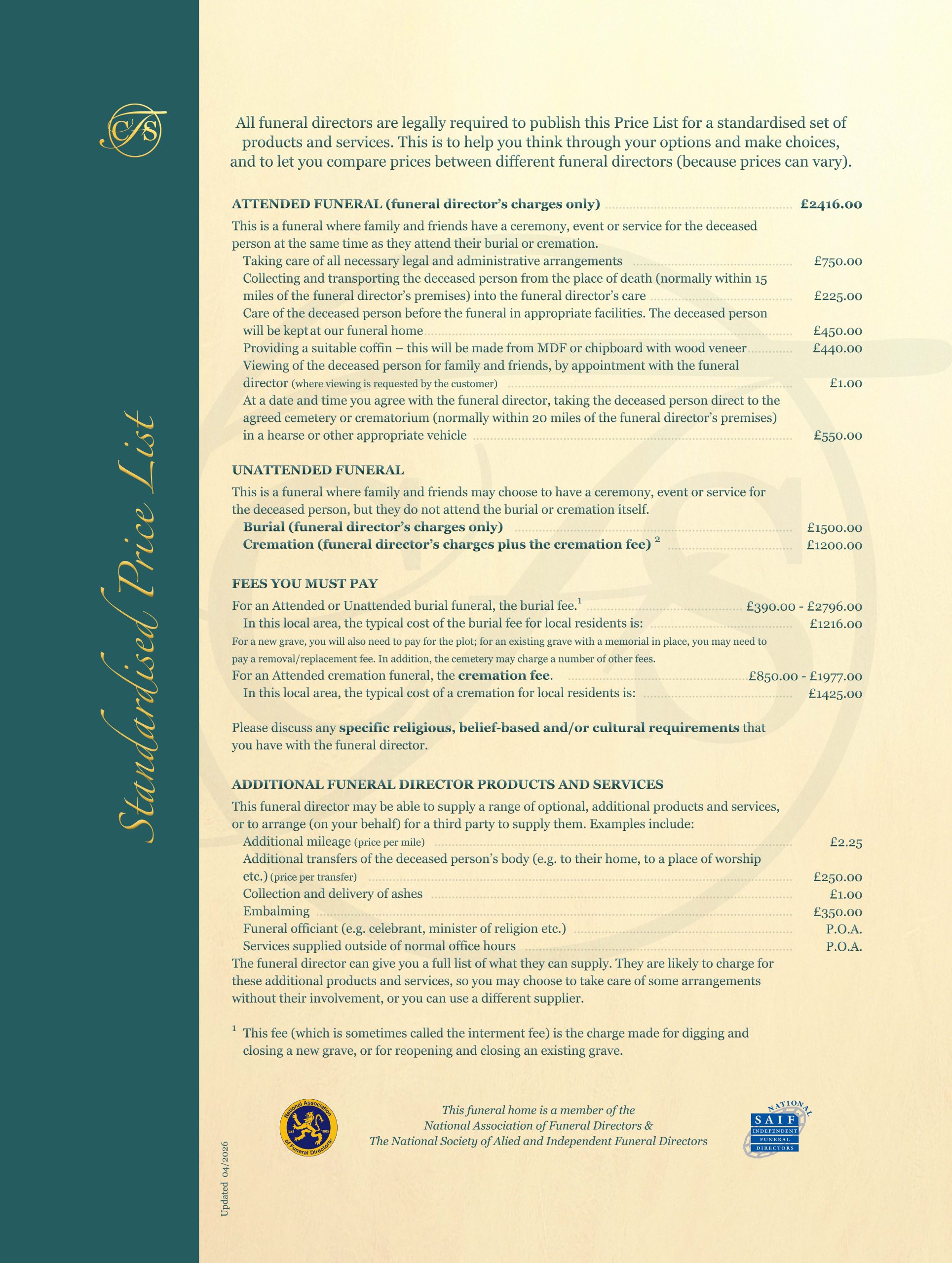 Since September 2021, it has become a requirement that all Funeral Directors in the UK put these links on their home page, to ensure families can find important information with just one click.